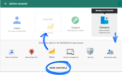 When you sign in to the Google Admin console, you arrive at your Admin console dashboard. Here, you'll find controls for performing administrator tasks like adding users to your account and managing service settings. Some controls you need might initially be hidden. You can easily add these controls to your dashboard, then arrange controls however you like.