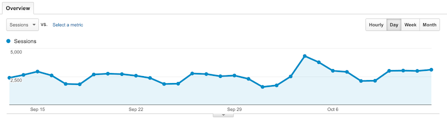 If you wish to view this data more specifically, you can change the data points to show hourly, weekly, or monthly, as well. This can be especially helpful when looking at large date sets. If you are looking at data over a single day, the view will default to hourly.