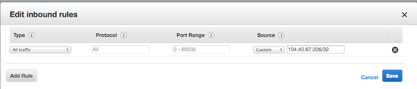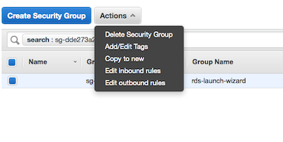 MySQL インスタンスが Amazon RDS でホストされている場合、[Publicly Accessible] 設定を [Yes] に設定する必要があります。サーバーが AppSheet からのトラフィックを確実に受け入れるようにするには、Amazon RDS のセキュリティ グループ設定に移動し、EC2 Management Console に入り、[Edit inbound rules] を選択して、AppSheet の IP アドレスからのすべてのトラフィックを受け入れるルールを作成します。これについては、IP アドレスとファイアウォール情報を管理するをご覧ください。