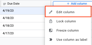 また、[Due Date] ヘッダーをダブルクリックすることもできます。