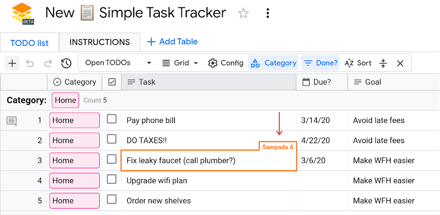 Collaborator bubbles shows you other collaborators who are viewing the table. You can hover the cursor over the bubble to view the name or email address of the user, depending on their profile visibility settings.