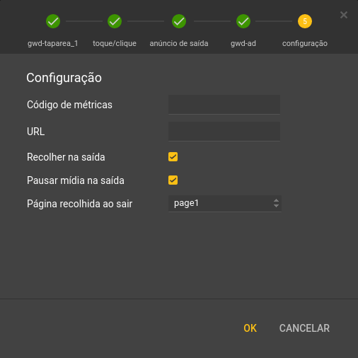 - Pausar mídia na saída: marque essa opção para que a reprodução de áudio e vídeo seja interrompida quando o usuário fechar o anúncio.