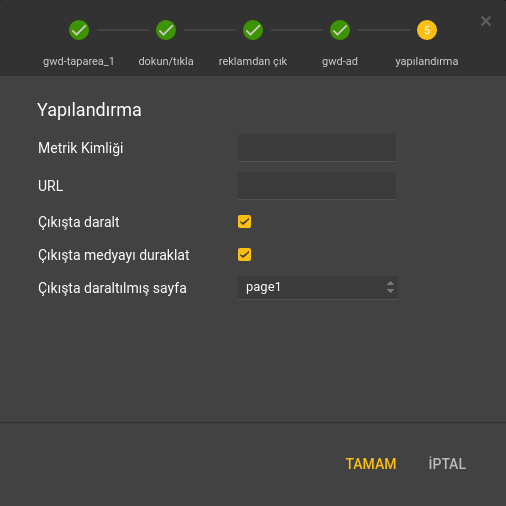 Hedef Dokunma Alanı bileşeni ( gwd-taparea_1)Etkinlik Dokunma Alanı > Dokunma/Tıklama İşlem Google Reklamı > Reklamdan çık