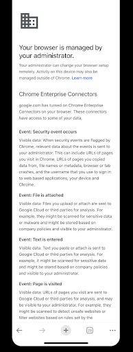 Admins can apply policies and preferences across a user's devices. Settings apply whenever the user signs in to Chrome browser with their managed account on any device. This functionality already exists on Windows, Mac, Linux, ChromeOS and Android. We are in the process of bringing this functionality to iOS.