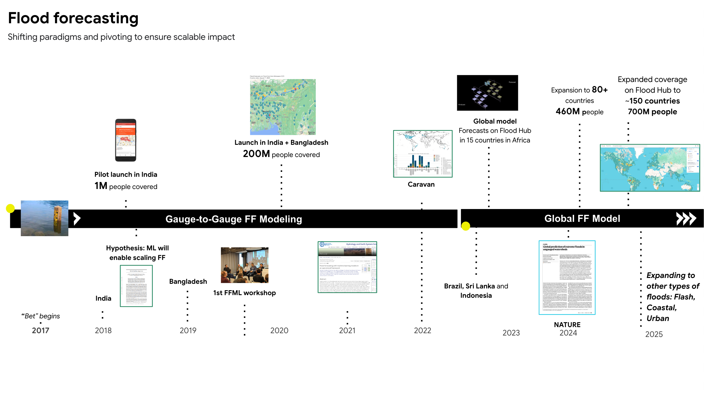 Google aims to provide accurate, actionable flood alerts worldwide, with a current focus on riverine floods. We believe AI can offer innovative solutions and improve lives. By leveraging our resources and commitment to responsible AI, we can make a significant impact.