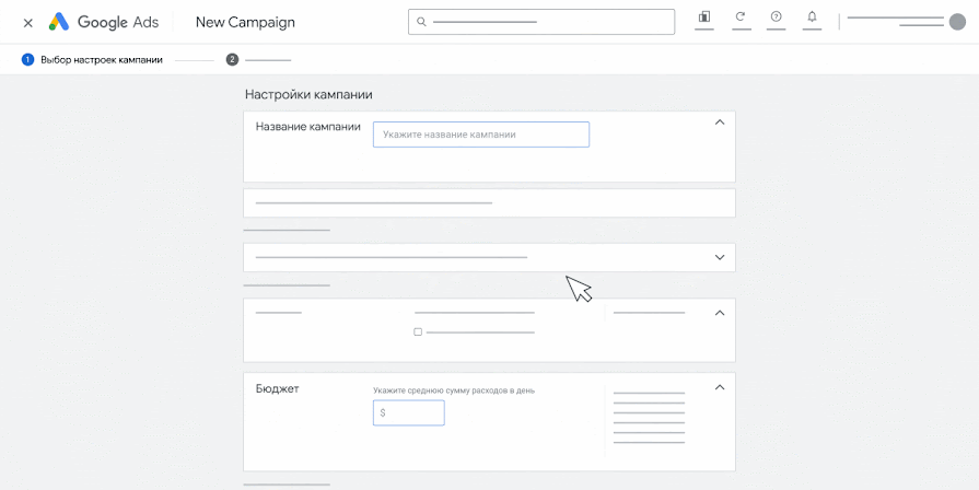 - Задайте бюджет и выберите стратегию назначения ставок, а затем нажмите Сохранить и продолжить.