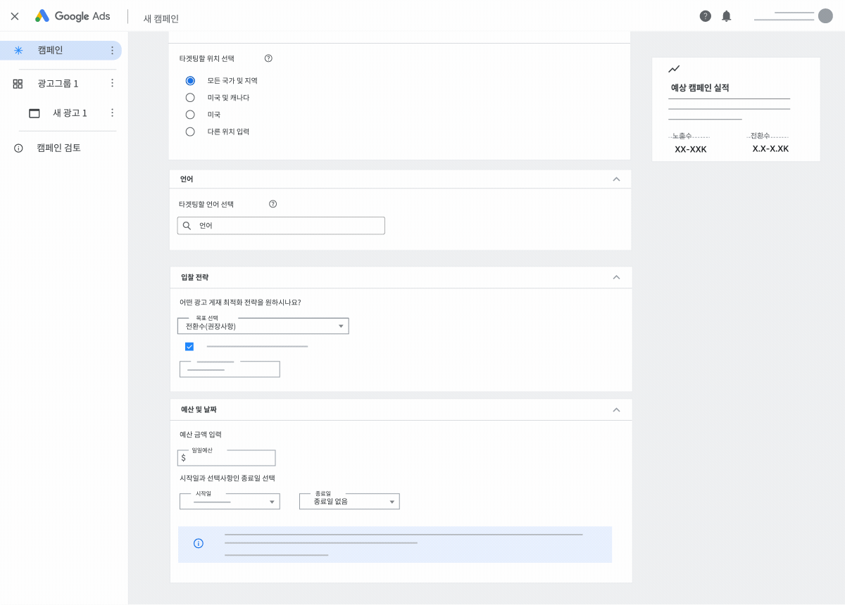원하는 고객에게 광고가 게재되도록 하려면 고객이 사용하는 언어와 타겟팅할 위치를 포함하세요. 위치 및 언어 타겟팅을 추가하는 방법 자세히 알아보기.