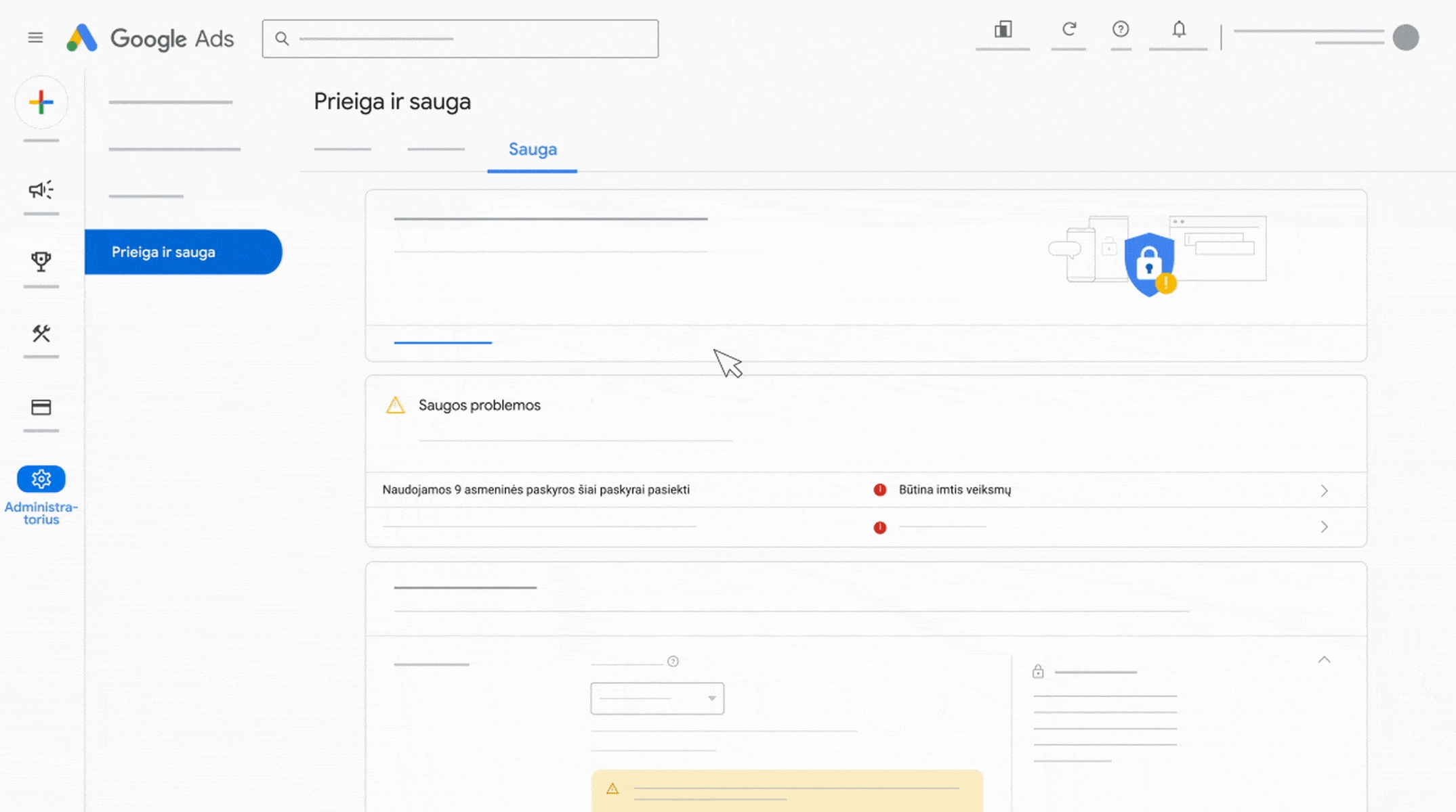 - „Google Ads“ paskyroje atidarykite skiltį Prieiga ir sauga.