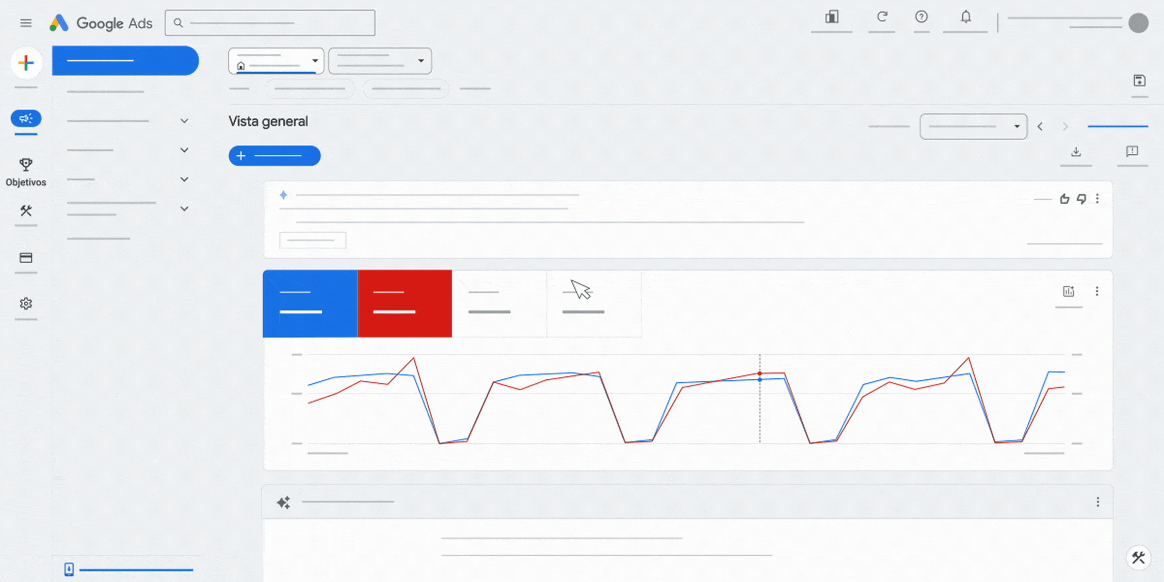 - En tu cuenta de Google Ads, haz clic en el icono Objetivos