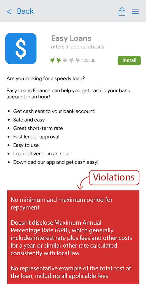 Apps that provide personal loans, including but not limited to apps which offer loans directly, lead generators, and those who connect consumers with third-party lenders, must disclose the following information in the app metadata: