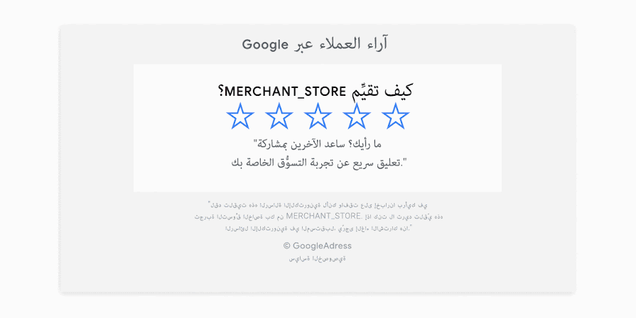 في ما يلي مثال على دعوة للمشاركة في الاستطلاع سيتلقّاها العملاء عبر رسالة إلكترونية في تاريخ التسليم المتوقّع أو بعده، علمًا بأن النص عرضة للتغيير بين الحين والآخر.