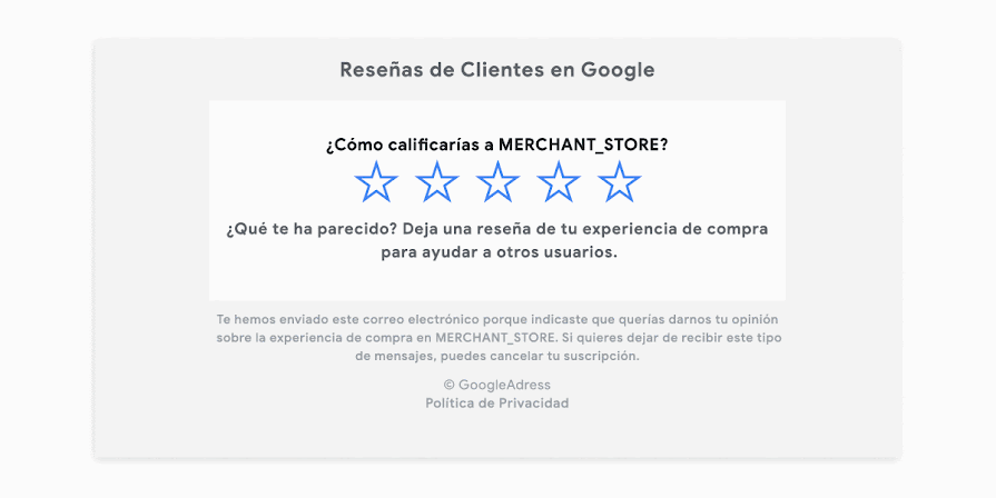 Abajo puede ver un ejemplo de la invitación para participar en la encuesta que los clientes recibirán por correo en la fecha de entrega prevista o más tarde. Es posible que actualicemos el texto ocasionalmente.