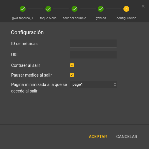 - Contraer al salir: marque esta casilla para que se cierre el anuncio cuando el usuario lo cierre.