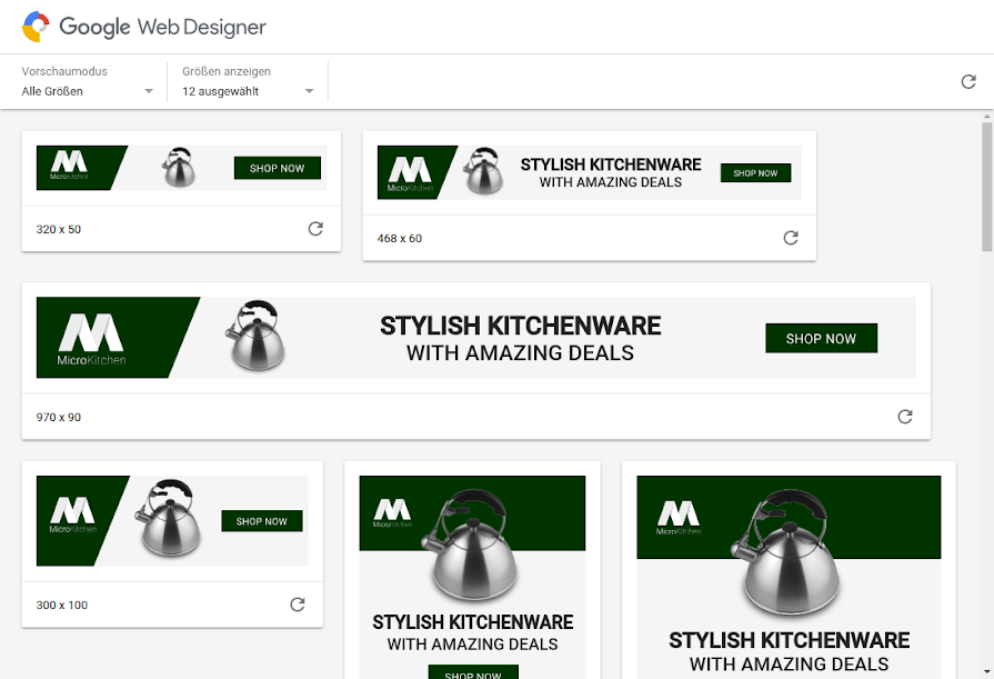 Responsive Funktionen werden für AMPHTML-Anzeigen nicht unterstützt. Für Videoanzeigen, animierte GIFs und Bildanzeigen können Layouts in mehreren Größen verwendet werden.