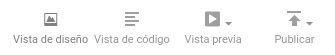 En la barra de vistas puede elegir entre la vista de diseño y la vista de código, obtener una vista previa del documento en un navegador y publicar el anuncio.