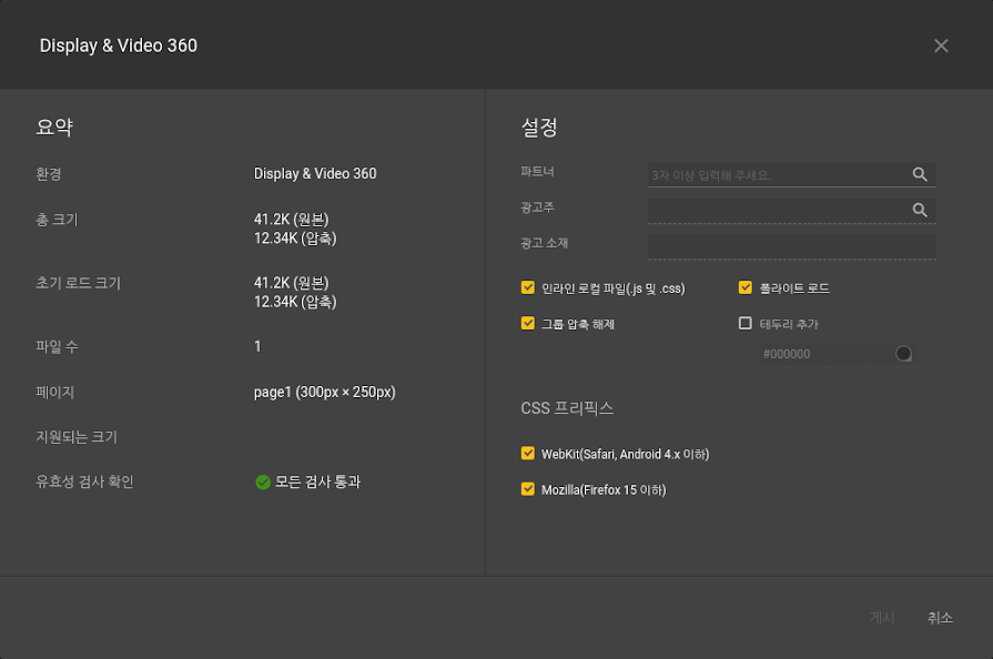 - 인라인 로컬 파일 - 자바스크립트 및 CSS를 외부 파일이 아닌 HTML 파일 내에 배치합니다. (AMPHTML 광고의 경우 자동으로 선택됨)