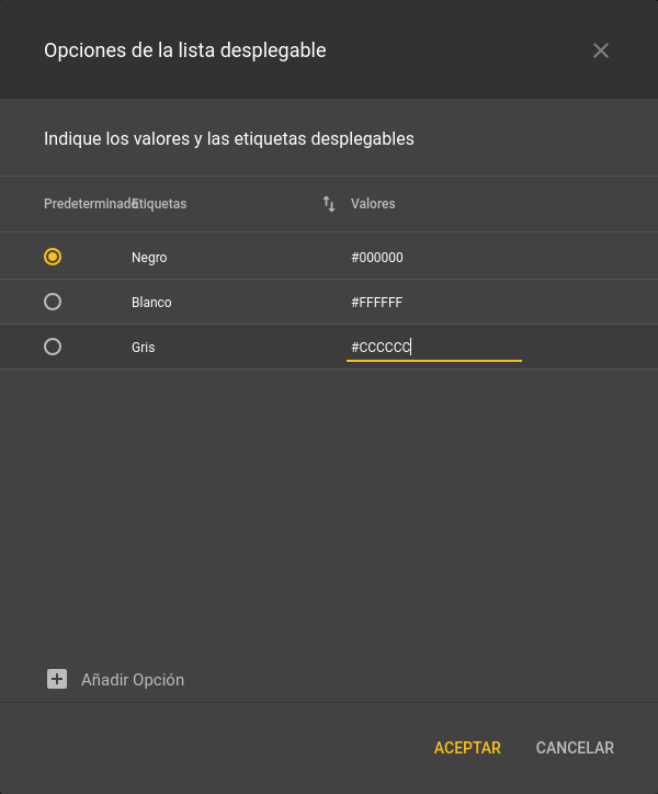 Añadir opción.