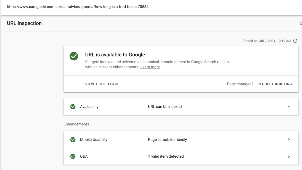 We’ve seen mixed results when using the URL Inspection tool. Different results appear for different people and times.