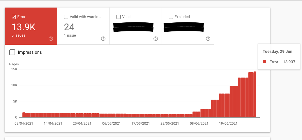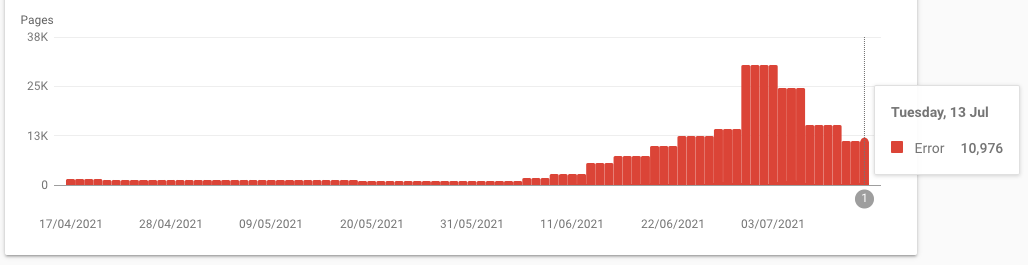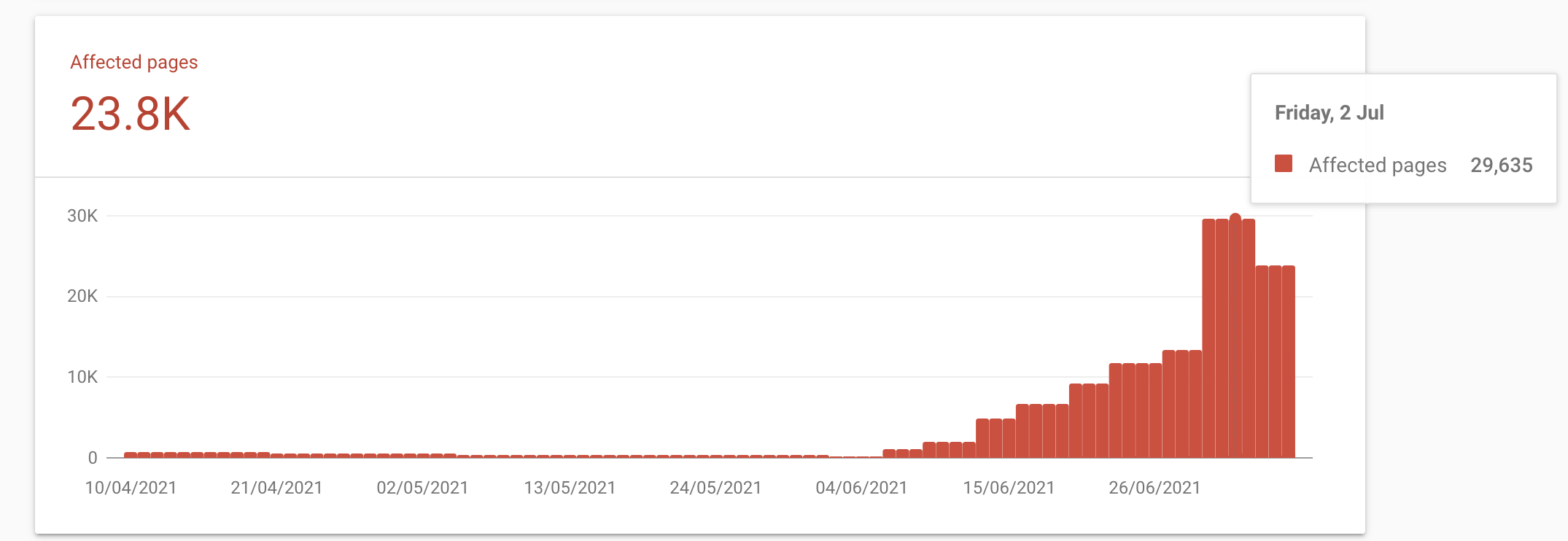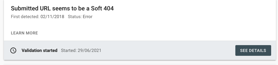 Since the start of June we had a slight uptick in soft 404s being reported, in recent days this has significantly spiked. We saw this larger uptick start from the 6th of June 2021 and then roughly every 3 to 4 days at ~2-3 thousand URLs. This has resulted in pages previously ranked #1, #2 for particular keywords being completely removed from Google.