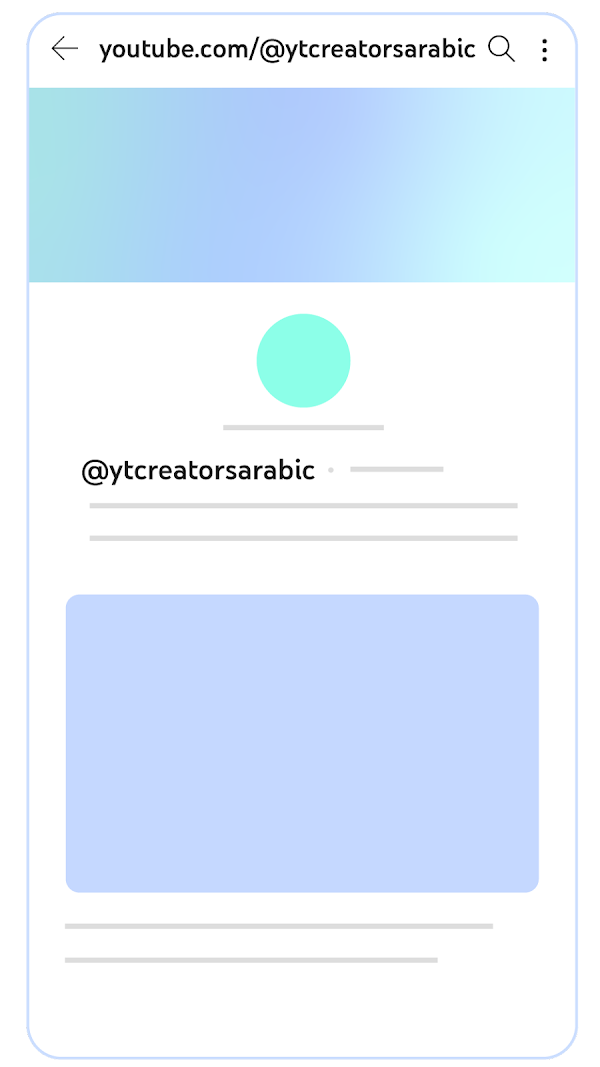 يمكن للمشاهدين وصنّاع المحتوى البحث عن قناتك مباشرةً على YouTube باستخدام الرمز @ متبوعًا باسمك المعرِّف، والذي يمكن العثور عليه في صفحة قناتك أو بطاقة ملفك الشخصي. ستحصل كلّ قناة على اسم معرِّف خاص بها يمكن استخدامه للعثور على مستخدمين آخرين والتفاعل معهم.