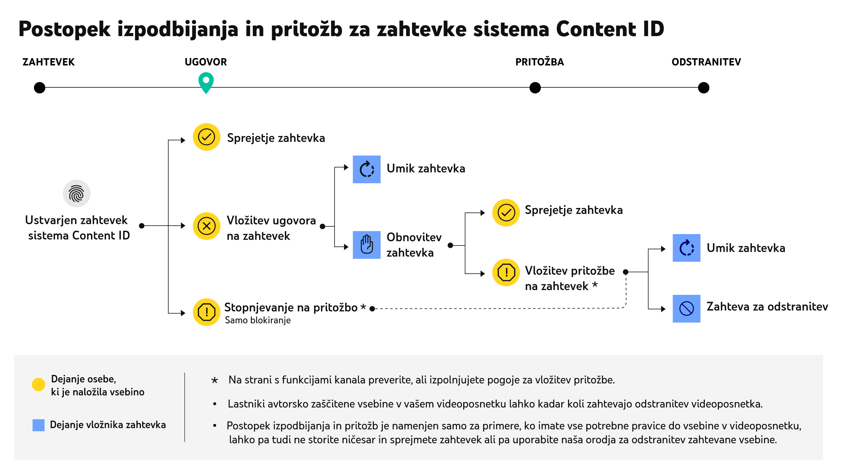 YouTube vam ne more pomagati pri odločitvi, ali izpodbijati zahtevek. Če ne veste, kaj storiti, poiščite pravno pomoč, preden izpodbijate zahtevek.