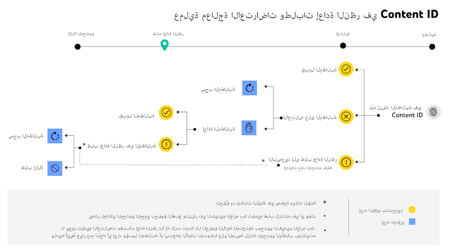 في حال ثقتكم بأنّ المطالبات بالحظر غير محقّة، يمكن أن يشكّل خيار "التصعيد إلى طلب إعادة النظر" حلاً سريعًا لعملية الاعتراض بشكل عام، لأنّه لدى المدّعي 7 أيام للردّ على طلبات إعادة النظر. يعني ذلك أيضًا أنّه يمكنكم استعادة إمكانية عرض الفيديو الخاص بكم على YouTube في أسرع وقت ممكن.