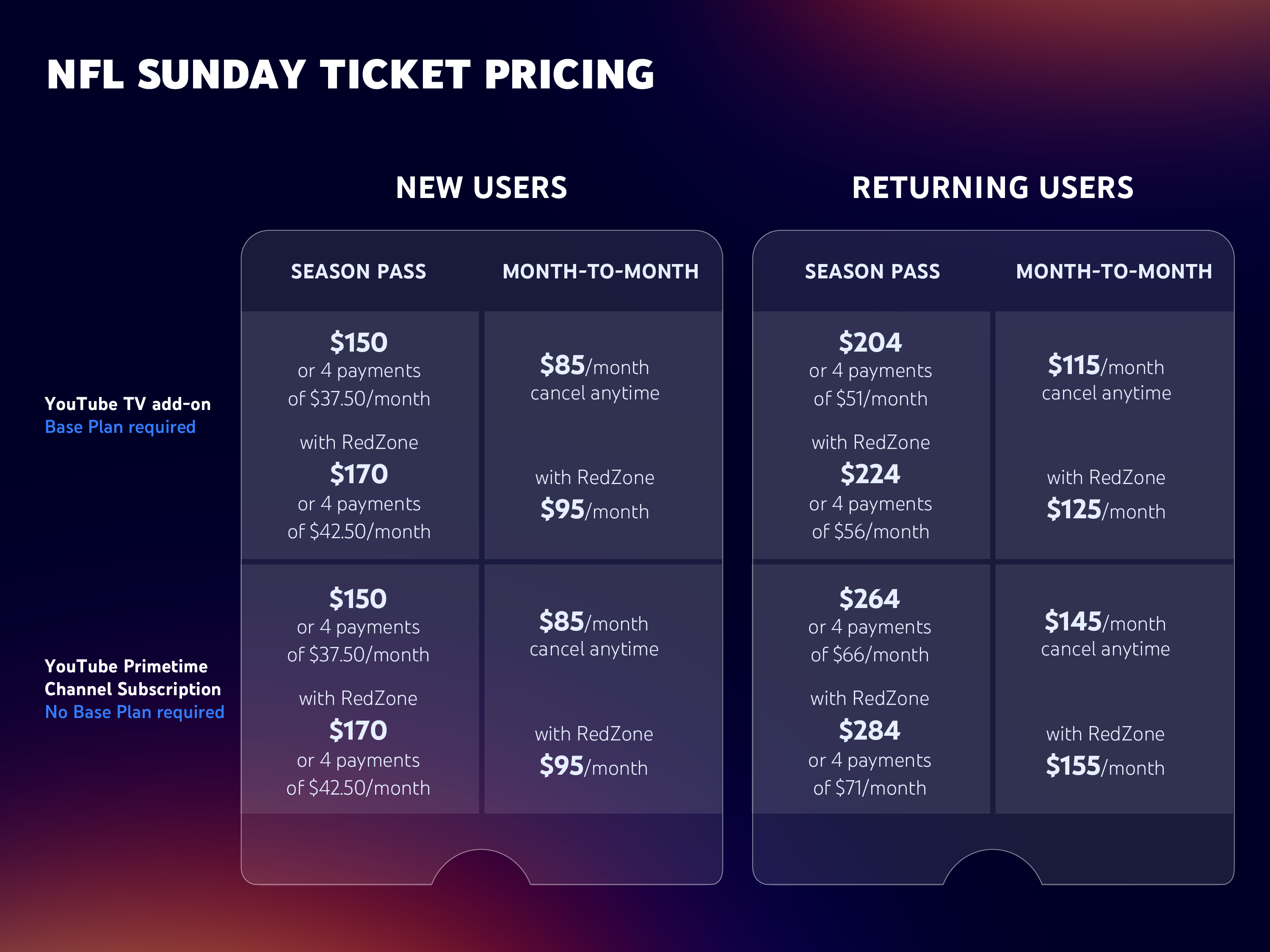 How much is NFL Sunday Ticket on YouTube TV and YouTube?